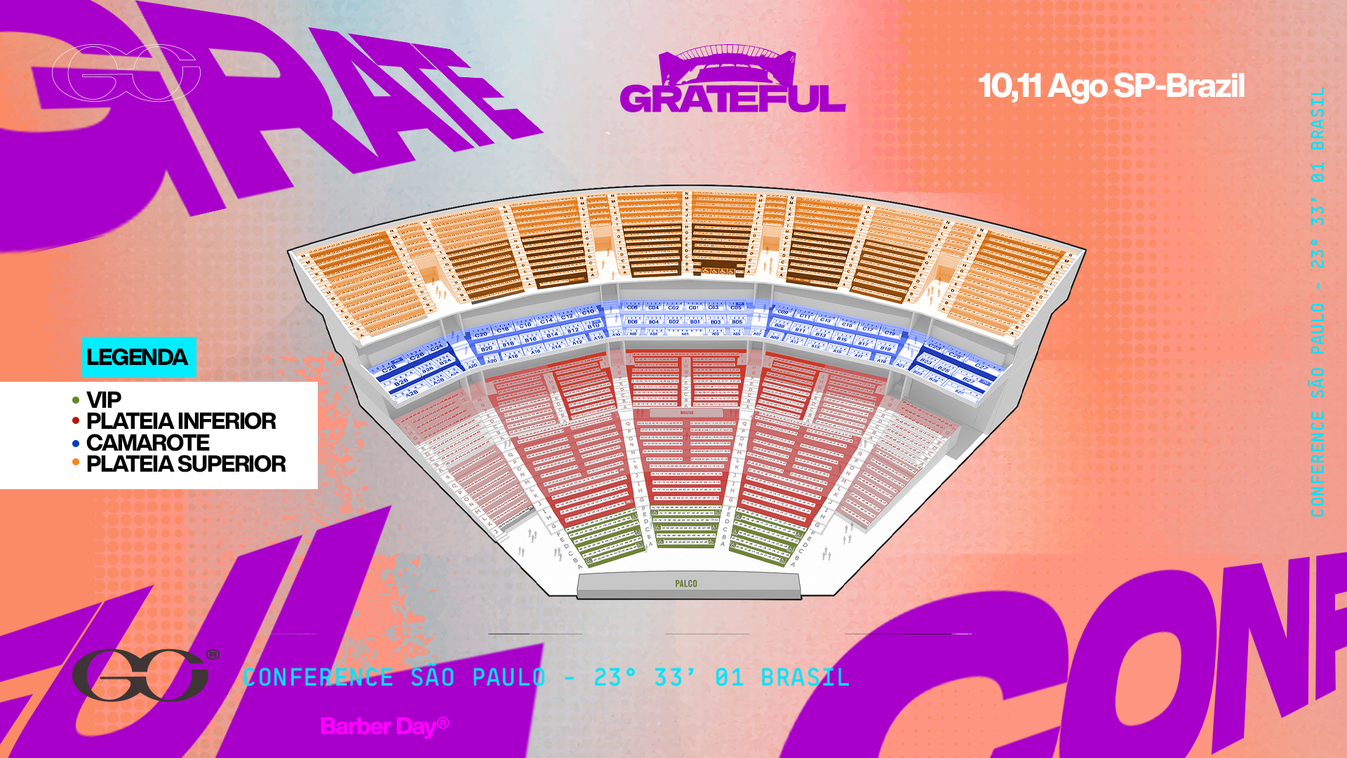 O ingresso VIP inclui entrada preferencial, assentos privilegiados, acesso ao Espaço VIP e um Kit VIP exclusivo Grateful com itens oficiais do evento.